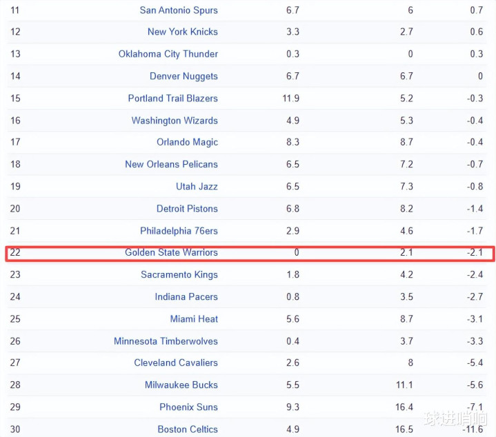 21-30名:76人、勇士、国王、步行者、热火、森林狼、骑士、雄鹿、太阳、凯尔特人。